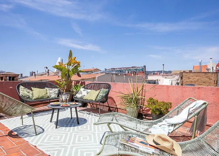 The 1-room Glam Penthouse Barcelona Apartment lies merely 1.9 km from Las Ramblas Pedestrian Street and approximately 5 minutes' walk from Rocafort tube station. The apartment features a terrace that overlooks the mountain.